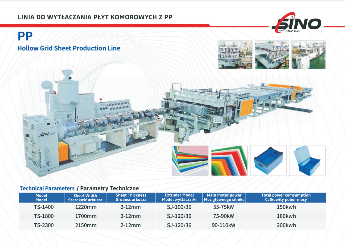 Linia do wytłaczania płyt komorowych z PP